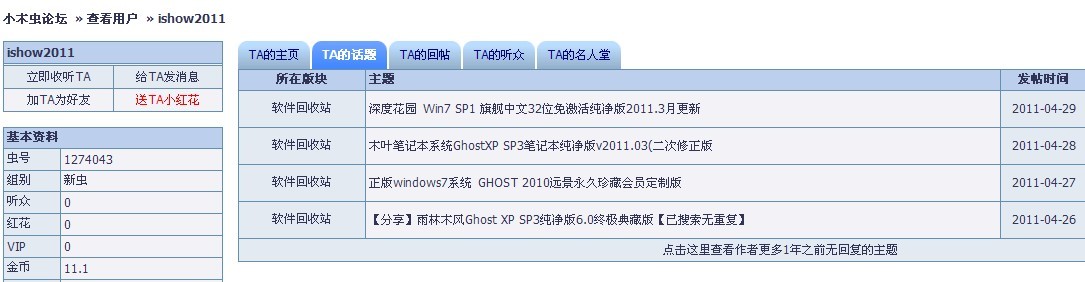 对ID为 ishow2011 在软件下载资源版禁言一周的备案