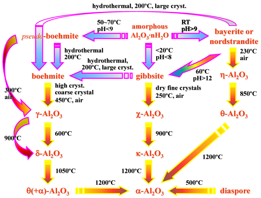 关于活性氧化铝,工业上有两种定义,一是专指γ-氧化铝,二是指由χ-、η-、γ-氧化铝及少量θ-氧化铝等高温热稳定变体构成的混合物的统称。 工业上制备的γ-氧化铝或活性氧化铝也称低温氧化铝,化学通式为Al2O3·nH2O (n<0.6),一般由所谓的氢氧化铝转化而来。严格说来,Al(OH)3只是一个化学符号,氢氧化铝实际上是以水合氧化铝形式存在的。结晶形式的水合氧化铝分为三水氧化铝和一水氧化铝两种,分别含3种和2种变体,而非晶态水合氧化铝工业上常见的是拟薄水铝石。工业上俗称的低温氧化铝一般经由低于600℃热处理制备,但在140-150℃的低温条件下水合氧化铝是不可能脱水制成活性氧化铝的。 相关文献可参考: I. Levin and D. Brandon, Metastable Alumina Polymorphs: Crystal Structures and Transition Sequences, J. Am. Ceram. Soc. 1998, 81(8), 1995. 关于ZSM-5、SBA-15、MCM-41硅铝比对催化效果的影响,可以这样分析:1.ZSM-5含有不同强度的酸中心,既有Brönsted酸中心又有Lewis酸中心,而SBA-15、MCM-41则仅有强度较弱的Lewis酸中心。对于H型分子筛和介孔材料,随硅铝比增大ZSM-5的酸中心密度下降,但酸中心强度增强,而SBA-15、MCM-41的酸中心强度变化不明显;但Na型则不具有酸性,只有碱性。即使是部分Na离子被交换,对分子筛而言达不到一定交换度也不会呈现出酸催化活性。如果想用分子筛做载体制备固体酸催化剂,最好选择氢型的,这样便于调节酸强度,可能的话选择较高硅铝比的分子筛比较合适,因硅铝比越高热稳定性和水热稳定性越好。 |