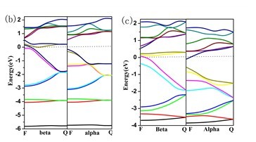 在比较计算结果的时候,发现两个能带出现了不同。一个能带的alpha子能带向下移动了。想问一下一般有什么原因会造成能带向下移动? 下图可见右边的图的alpha子能带叫左边的向能量低区移动了。请大家帮我分析一下 |