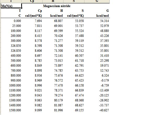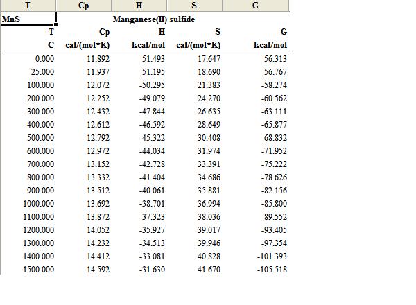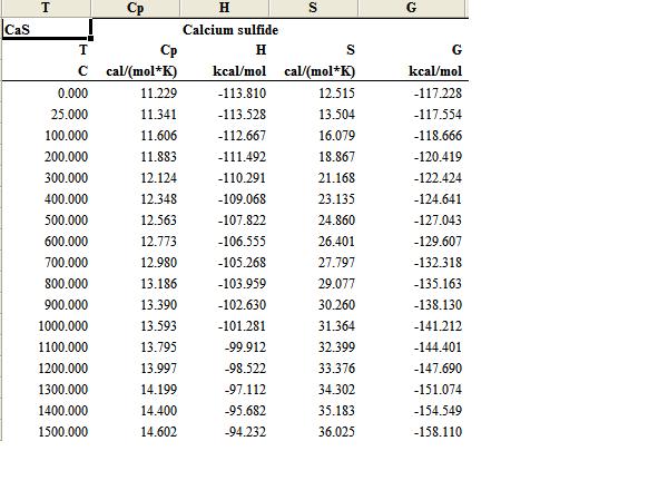 因毕业急需以下物质的摩尔吉布斯生成能:MgS、MgN、MnS、CaS,温度区间为1100~1500摄氏度,如果有相关数据或者资料,请各位大侠不吝赐教。谢谢。回答就有大礼相送,:![]() |