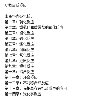 那位大侠知道这个版本的《药物合成反应》是那个版本,谁编写的目录如下图?急,谢谢!