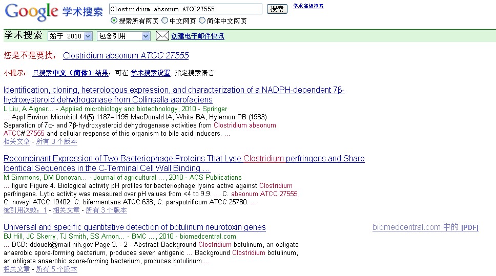 请问哪些大学在做Clostridium absonum ATCC27555