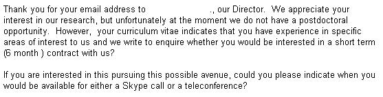 想申请博后的,没想到只有6个月的时间,地点是在新西兰University of Canterbury,Christchurch。好像是地震的地方,有点怕怕。现在想要skype面试,申请别的国家的博后都没人回了,不知道这个有没有必要去呢,不知道以后回国这个经历有没有用,或者说可不可以做跳板到别的地方呢 |