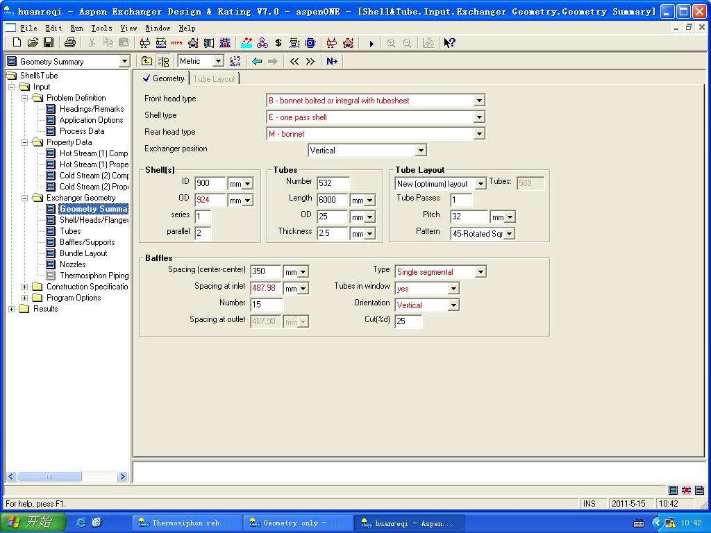 各位师兄师姐: 小弟接触htfs不久,以前都用htri 最近有些困惑: 两个换热器串联,但是,热物流串联走管程,冷物流并联走壳程,回天乏术在哪里规定啊? 再就是,htri中,如果有并联的话,要分别输入每个换热器的流量(总流量的二分之一)。htfs里面有这一项输入么? 这里有我做的文件,运行不出来、小弟困惑 |