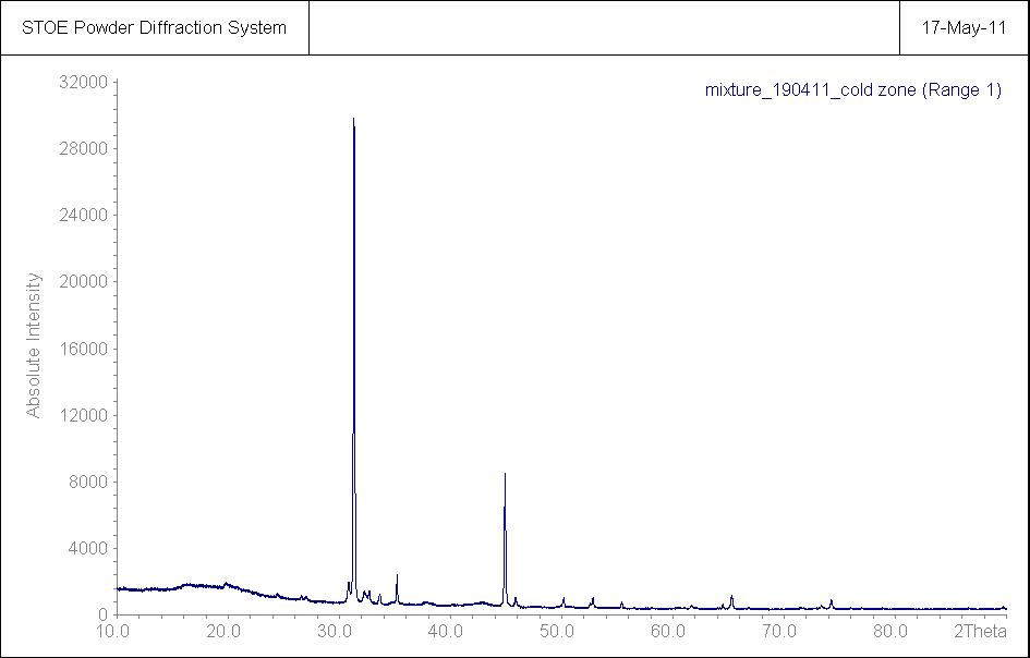 用的Cu靶,得到的数据导入到Jade 5里查不到是什么相的。我用的2004的数据库,谁有新的数据库能不能帮我找找看。可能含有的元素是Ga,K,N,H,可能还有微量的过渡金属。上传的pdf3文件可以直接用jade 5打开。谢谢! [ Last edited by rain841230 on 2011-5-17 at 13:24 ] |