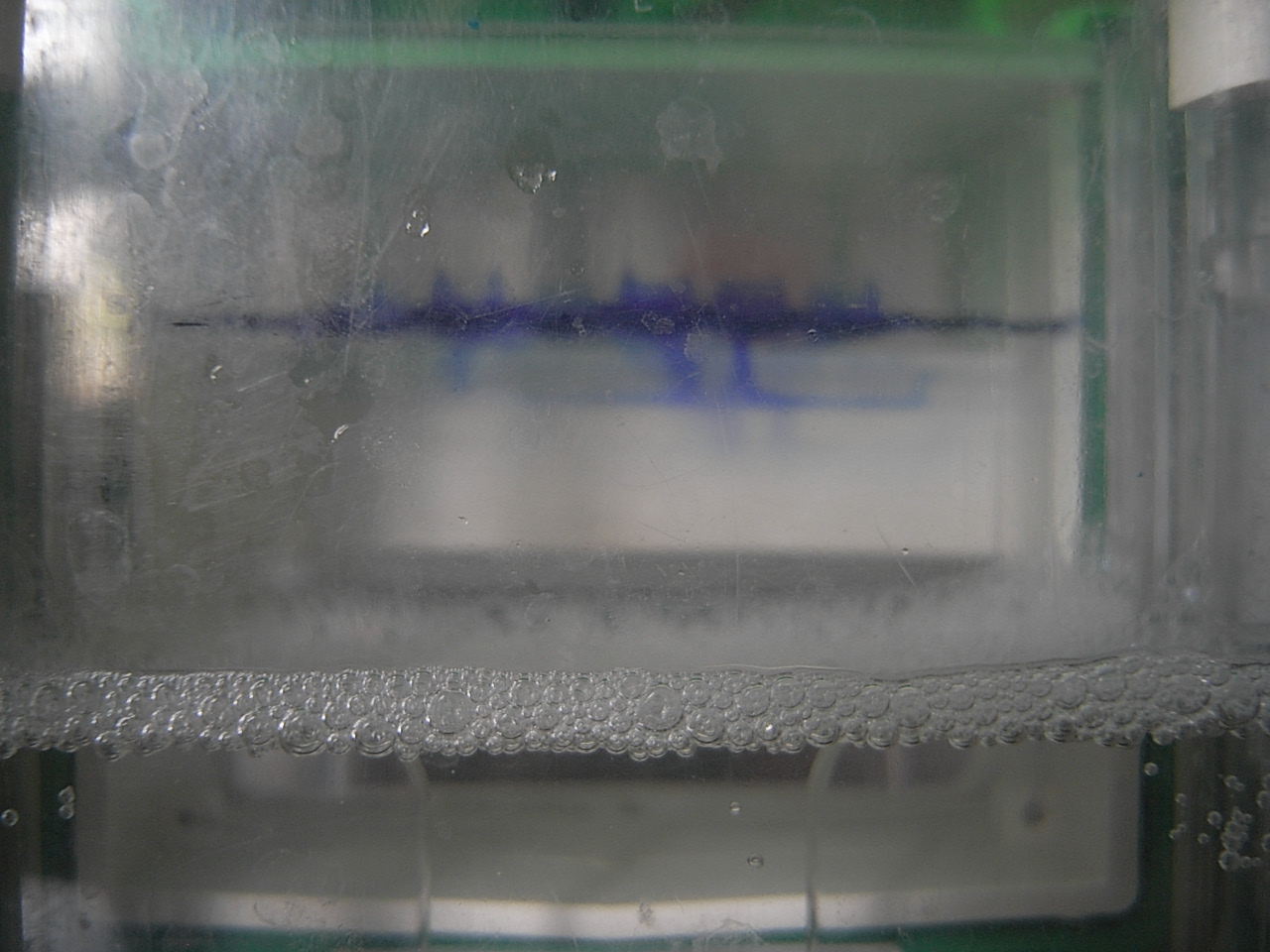 求助各位高手指点,本人最近蛋白电泳过程中经常出现在蛋白样品刚跑离样品孔还没进入分离胶的时候,样品就漏下来了!如下图所示。在我想的问题都找遍了,比如浓缩胶浓缩时间,玻璃板清洗问题及玻璃板都换新的了,还有试剂都换了一套,还是漏 真不知道还有什么致命因素没有找到,请各位大侠指点!小弟将不胜感激! |