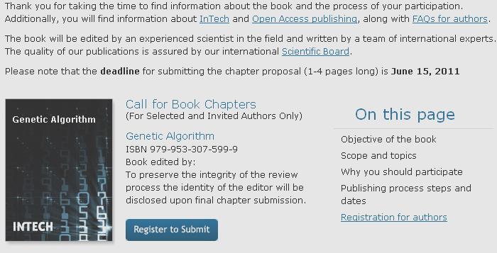 我今天收到InTech邀请,参加编Genetic Algorithm,不知有没有虫友参加编写吗?谢谢