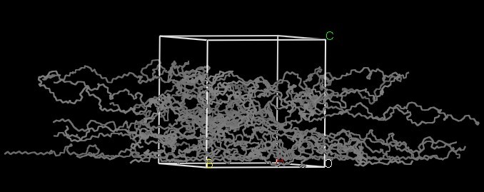 请教各位, 我想用amorphous cell 模块儿建一个x y 方向是周期性边界条件,而Z方向非周期的一个高分子模型, 所以选用了confined layer 的cell type, 但是运行完后发现盒子的顶部好大一个空间没有任何分子。盒子Z方向大小是50, 但是高分子链z方向最大也只有38, 请问为什么会出现这种情况,有什么解决方法么? 没用过MS,请大家多多指教 |