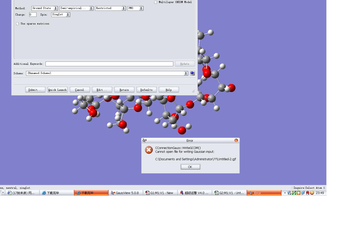 问题已经解决,是输出文件没有保存在软件所在目录下,谢谢啊,另外想咨询一个问题,怎么用Gaussian计算环糊精包结物得能量啊,看了些帖子,好像有个选坐标问题,还有一个怎么将两个分子放在一个界面中,本人绝对菜鸟啊