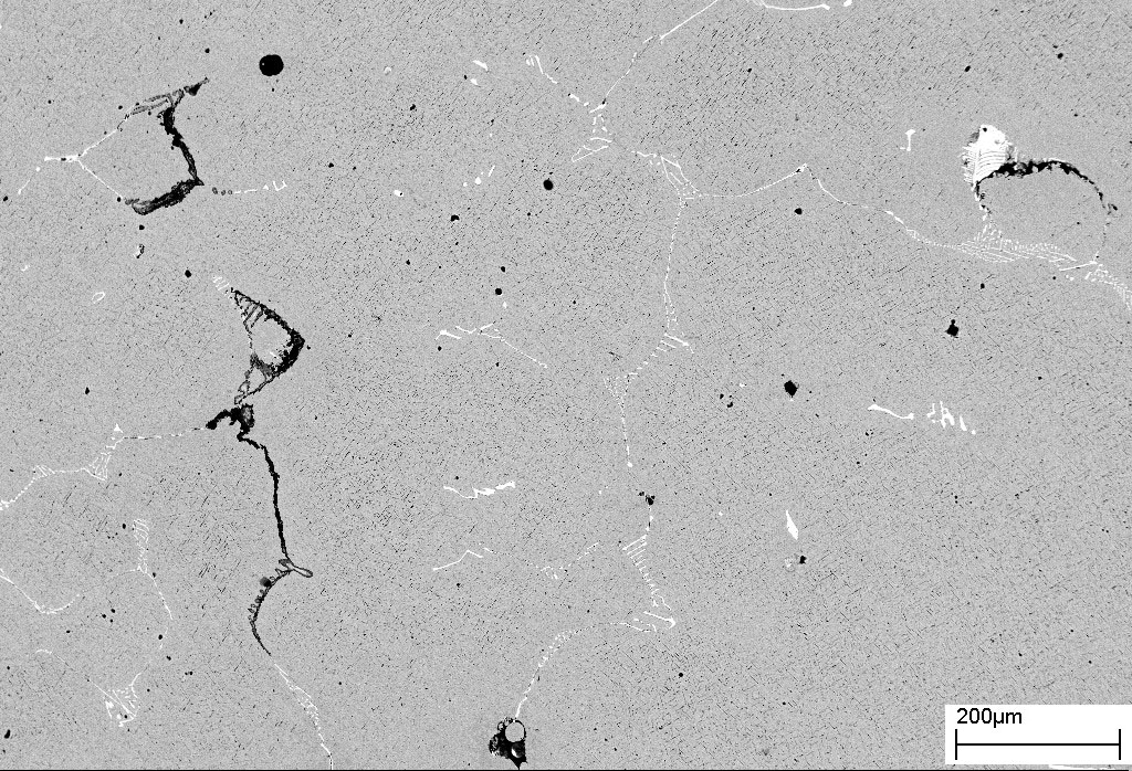 zhs4276689(金币+11): 我的是7075铝制件,工艺有点特殊。腐蚀的时候用1%HF或keller试剂,都试过,一般腐蚀2分钟多才勉强能看到晶粒,但是容易出现像图上的那些黑点,应该是腐蚀液残余?一般清水洗还不能洗彻底吗?另这些裂纹是因为孔洞而形成的吗?因为其他试样中孔洞较少,裂纹几乎也就没有。。 2011-05-25 14:41:12