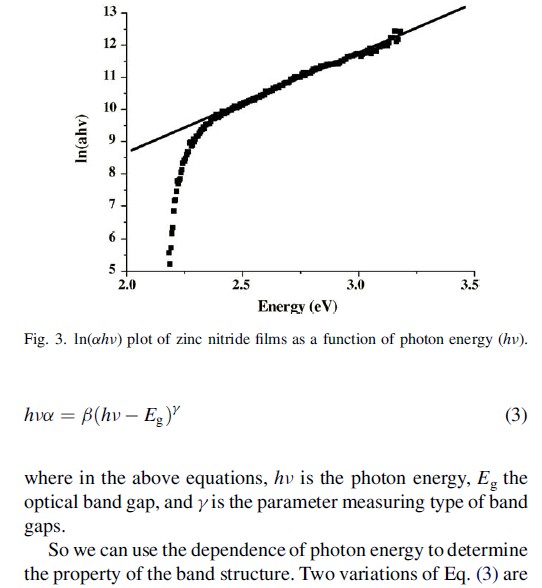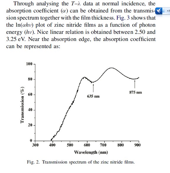 氮化锌的一篇文献,有3个图,一个是透射曲线图,另两个是跟吸收系数有关的,我不知道是怎么画出来的?望大家帮忙看看
