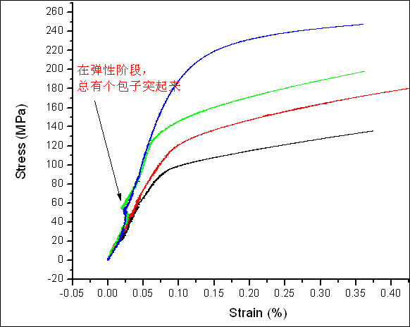 为什么应力-应变曲线在初始的elastic deformation 总是有一个包子突起来呢?