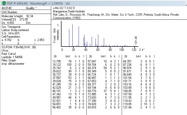 JCPDS卡片 430053 号 请问卡片中,其对应的hkl分别是什么啊,我的JADE上没有