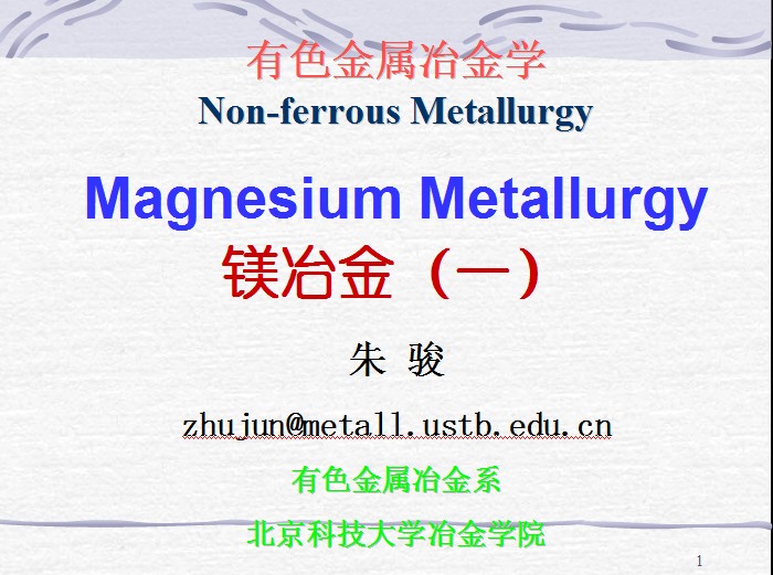 【课件】有色金属冶炼——镁冶炼(北京科技大学)
