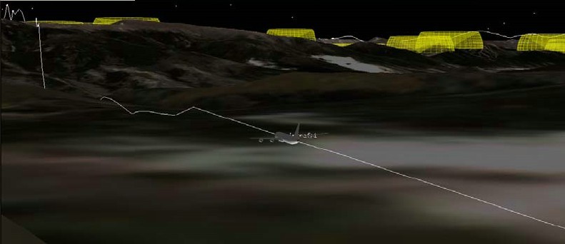 如何用VB.net或C#.net实现沿路径鸟瞰飞行?效果图如下,如果我想做一个如图中的飞机,该怎么做?我不大懂编程,所以从网上抄了一段代码(见下)可是发现在按指定路径飞行时,不能实现鸟瞰功能,甚至飞行在三维图的下面,是不是观察角度不对,由于不是很懂代码,所以不知该怎么做?请高手指点一下!谢谢!