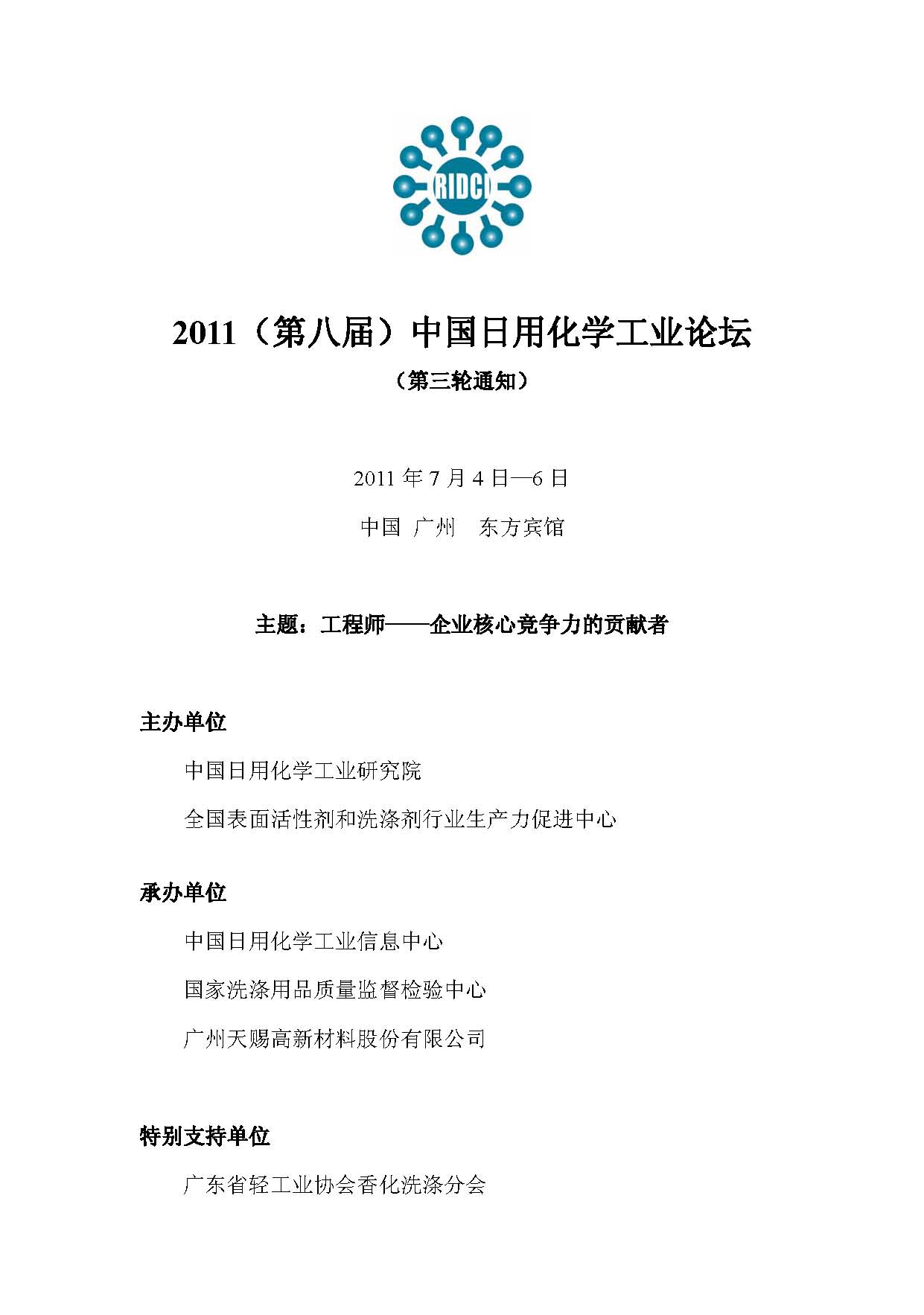 【2011年6月20日】2011(第八届)中国日用化学工业论坛