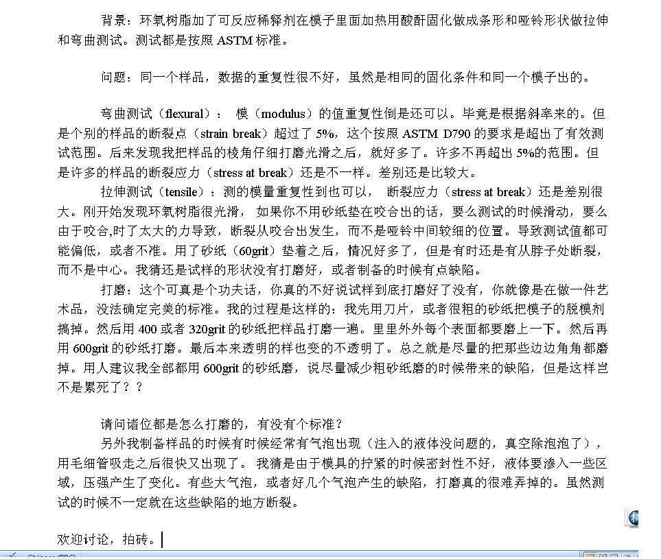 [交流] 环氧树脂或者其他热固性树脂力学性能测试 样品都怎么打磨?