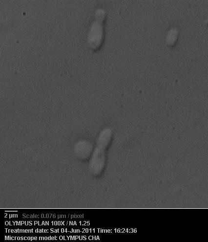楼主拍的不太清楚啊!我感觉像是酵母,有出芽生殖了。