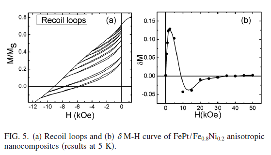 磁性测量M~H中,recoil loop 和deltaM~H 曲线是如何反应交换耦合的?