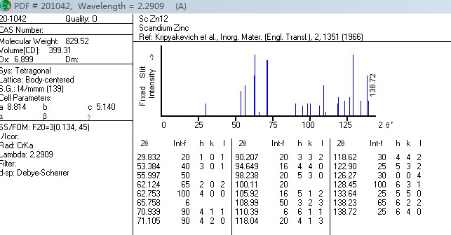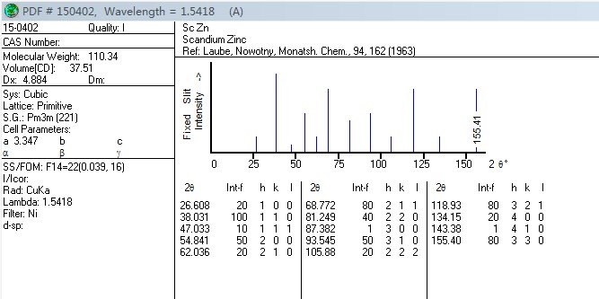 是的哈,我查到Sc-Zn相的卡片号073-8009,但是2004版本里面没有这个号~~