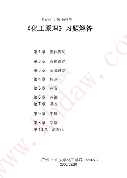 化工原理习题解答《化工原理_第二版》(祁存谦_著) 化工原理_第二版》中山大学(祁存谦著)全解,具体内容还没完全看。 [ Last edited by flmzxj on 2011-9-8 at 10:04 ] |