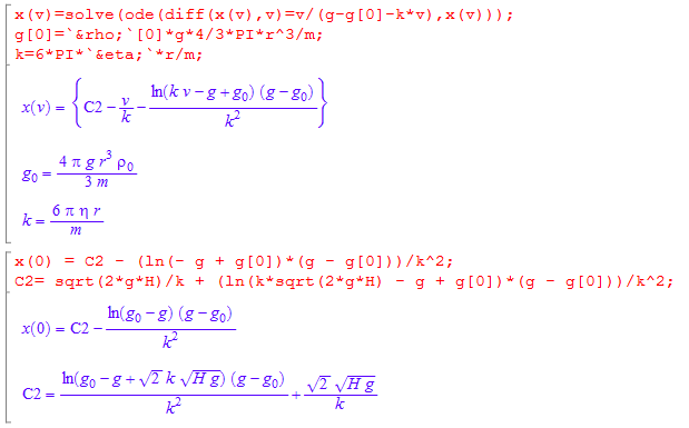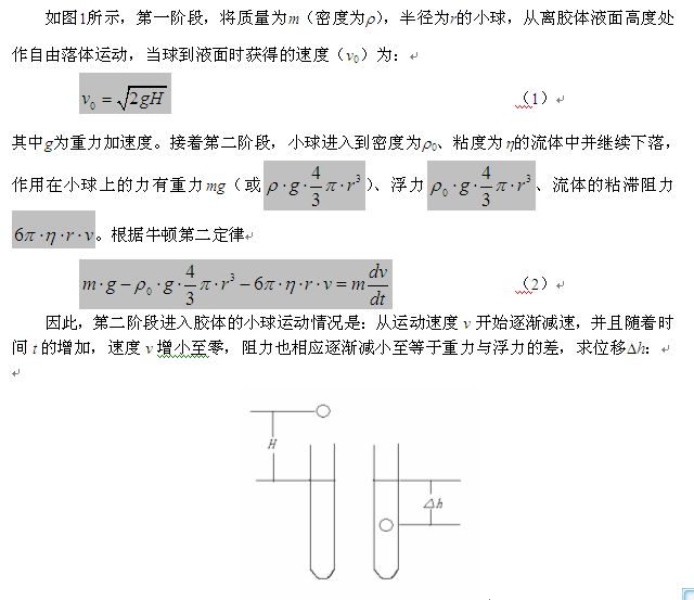 一个这样的问题,一个小球从离流体表面H高处自由下落,进入液面后受到三个力:重力、浮力、流体对其的粘滞力,最终停止运动,求小球落入的深度h。运动过程及相应的公式已经给出了,具体的见附件。希望给出答案及求解过程。多谢啦。 附件在五楼 [ Last edited by soliton923 on 2011-6-17 at 09:24 ] |
