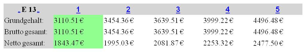 一般取得博士学位以后都是这个水平,具体是13级别中的哪一个档次,要根据博士毕业以后的工作年限,也就是博后经历的长短来决定. 楼主可以参考下面这个网址: http://oeffentlicher-dienst.info/tv-l/west/ 下面这个工资表也是从上述网址转贴过来的: |