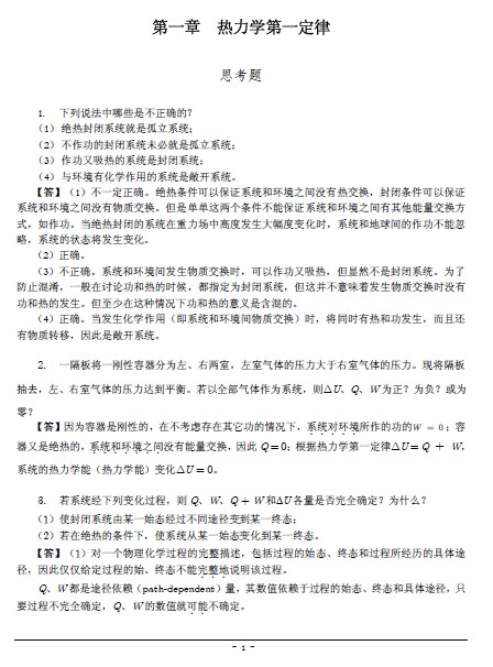 【课后答案】物理化学(侯新朴,第六版 人卫社)