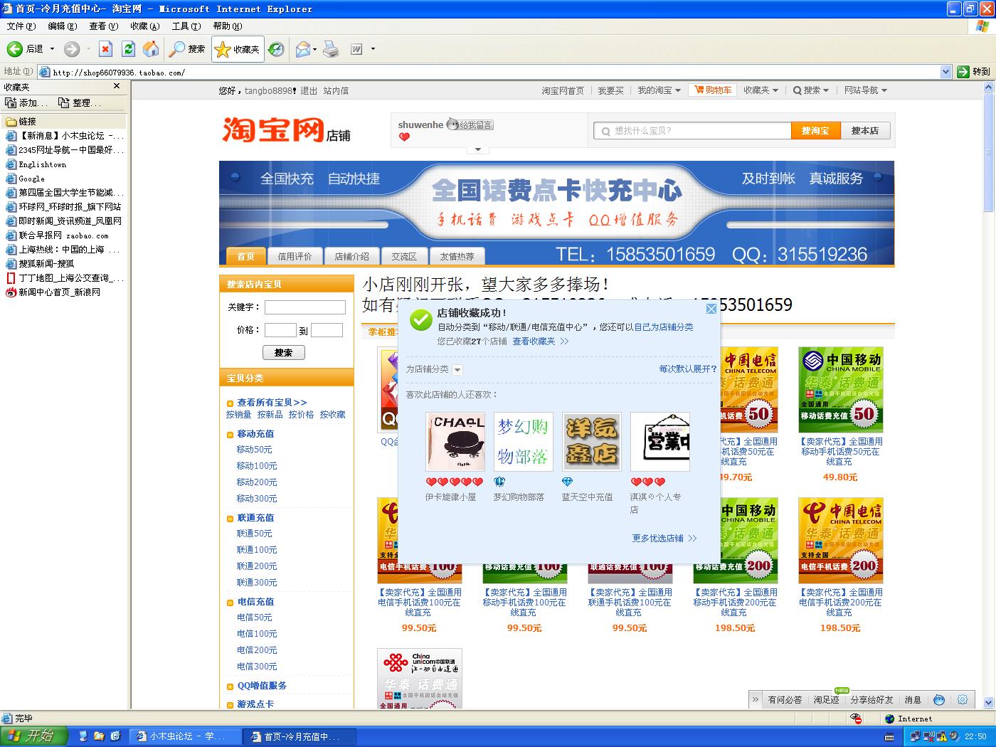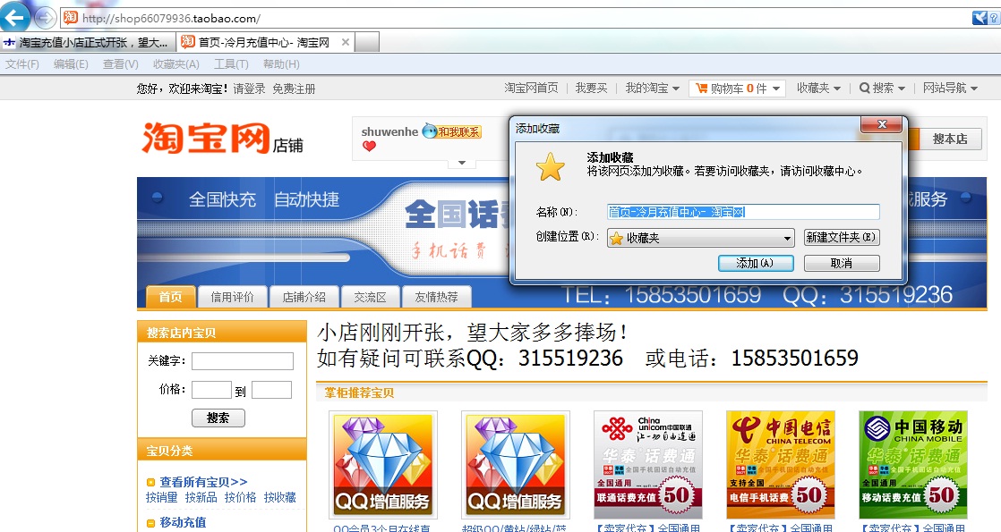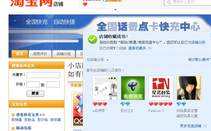 [交流] 淘宝充值小店正式开张,望大家多多捧场,收藏就送10金币