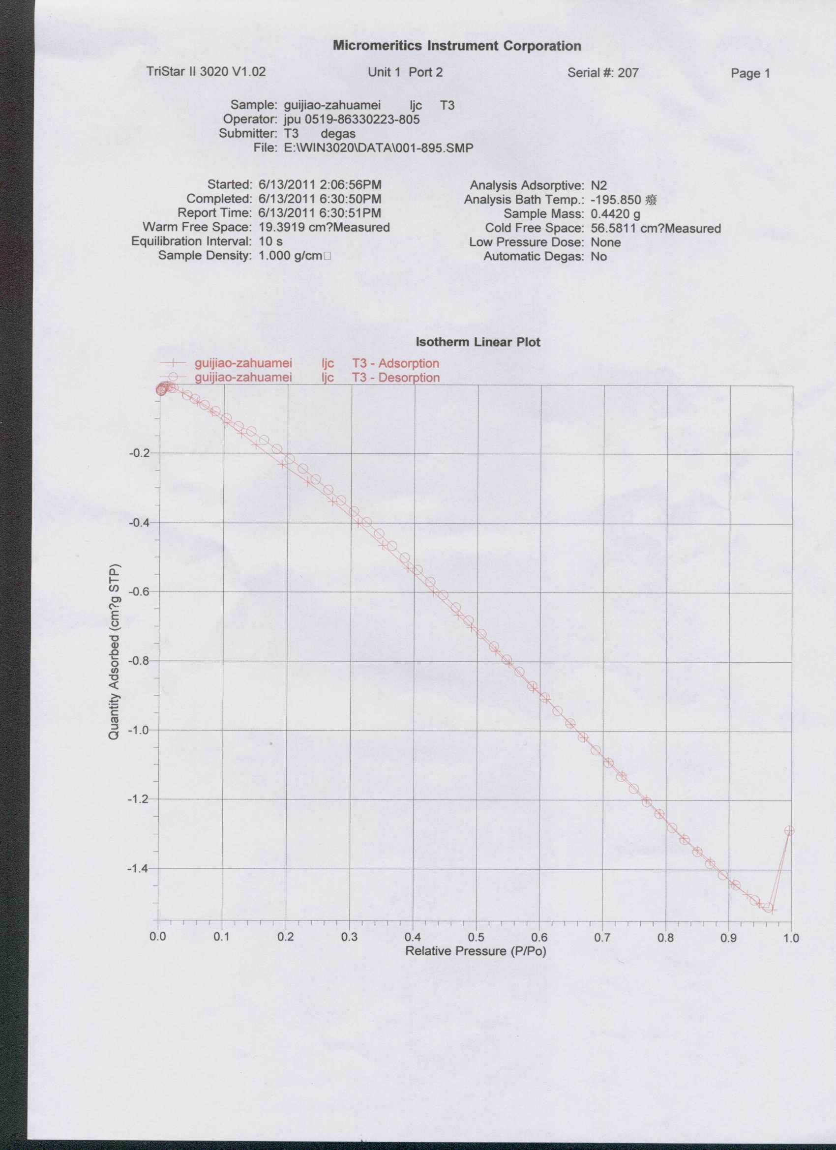 请各位指点,是否我样品量太少,还是材料比表面积太小的原因呢?