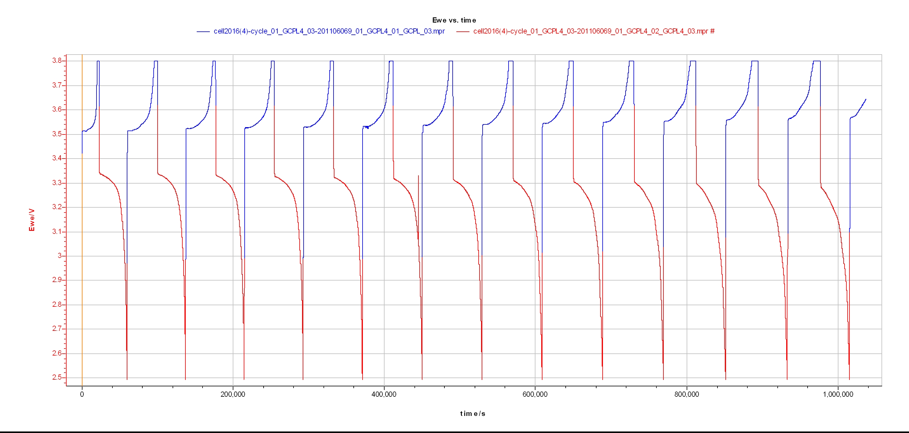 如图所示是小弟2016扣式电池的循环曲线,只用了0.1C进行充放电。正常吗?平台是不是太短了?初始和结束是不是电压变化太快?还能看出来什么?