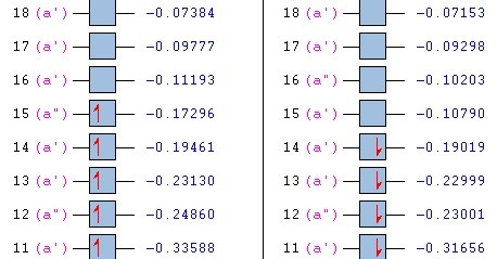开壳层的HOMO-LUMO gap 到底是哪两个相减啊?求高手指点。一下面的为例