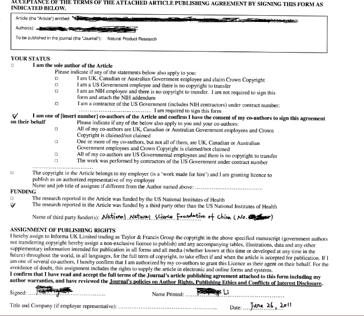 Funding 那里是填写自己文章所被支持的项目吧?还是不用填写,就美国的的要填写? 碰到同样情况帮忙回答下,谢谢 [ Last edited by tanzhijian on 2011-6-26 at 14:14 ] |