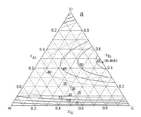 如图,怎样在三元系画等值线? 现在数据已经准备好了,即自变量x,y,z与相对应的因变量w都有了,怎样画出等值线图呢?用什么软件可以?谢谢了!(matlab和origin都学了一点,matlab上貌似没有现成的三元坐标,origin有现成的ternary,但等值线还是不知道怎么画) [ Last edited by 202412 on 2011-6-26 at 15:28 ] |