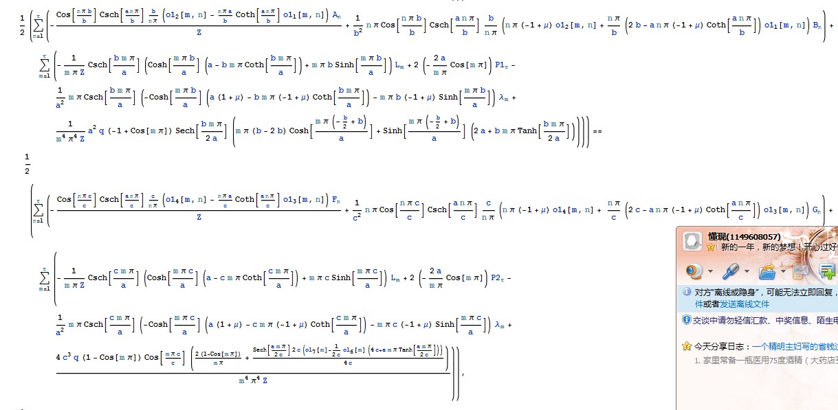 没有明白我的问题的q吧(416658319请写小木虫,谢谢!)我只有10个币,请大家帮忙啦!请大家有什么想法可以回复我一下,呜呜,就是用这几个方程解我的楼板的解析解,我像个无头苍蝇一样啊,请大家帮忙了啊,非常感谢!ps:图时12个方程中的其中一个。