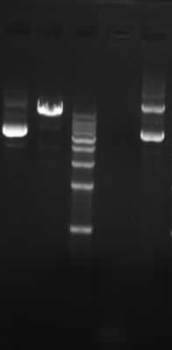 最近把目的基因连到了pPIC9K质粒上,要转化毕赤酵母,转化之前用SalI酶切线性化,电泳检测重组质粒没有问题,但是空质粒酶切后就什么片段都没有了,没有酶切的空质粒电泳后是有条带的,请教各位高手这会是什么原因呢?我已经做了3遍了,每次都一样。图上左起一次是没有酶切的重组质粒、酶切后的重组质粒、marker、酶切后的空质粒、没有酶切的空质粒。 |