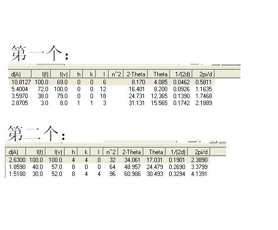 给出以下两种物质的xrd图谱的三强峰,即是给出d值和2T的数值。 注意: 不够三强峰的就不要写了!!! 物质1、C2AH8(2CaO·Al2O3·8H2O) 物质2、C2AS(2CaO·Al2O3·SiO2) 物质3、单碳型水化碳铝酸钙 C3A·CaCO3·11H2O~~ 截止日前再进行对比奖励哈,谢谢理解·· [ Last edited by wry3300 on 2011-7-2 at 14:21 ] |