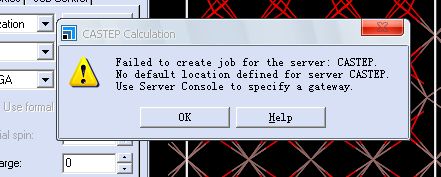 突然重启后,出现了:Failed to create job for the server: CASTEP.No default location defined for server CASTEP.Use Server Console to specify a gateway.让选择网关,如何解决啊?请教?谢谢!!