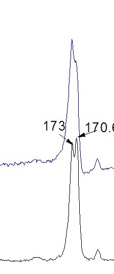 求助!脆弱的丝织品(脱过胶后,主要成分是丝素蛋白吧)的碳13核磁共振谱。。。173处是羰基的吸收峰 那170.6处是什么的吸收峰啊?用环氧化合物交联后消失了?
