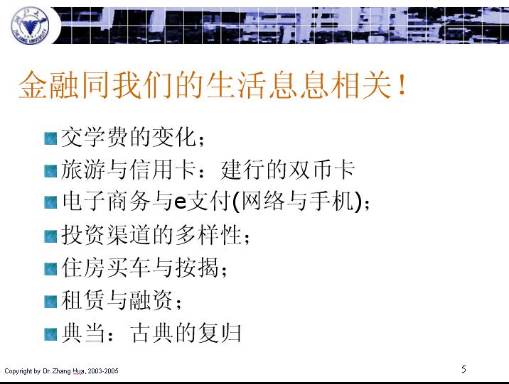 金融学课件(PPT格式),浙江大学经济学院章华老师制作,共十五讲,12.5M(展开后)。内容难度适中,制作不是很精美。可以做了解金融基础内容之用,也可以作为相关教程制作课件参考之用。 [ Last edited by 梅若鸣 on 2011-7-7 at 22:37 ] |