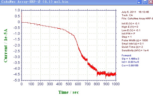 看你做的好像是HRP酶传感器,你做i-t曲线的时候,待测的是H2o2吗?你每次加了多少?