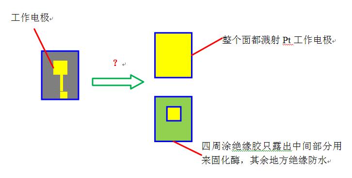 如图所示,左图是希望在灰色硅基底上溅射形成的pt工作电极 形式,但由于加工限制,在整个基底上都溅射了pt,然后用环氧树脂胶四周绝缘防水后,只露出中间的部分,这样处理后是否和左图的效果一样?工作电极的面积是不是就是露出的那部分呢?