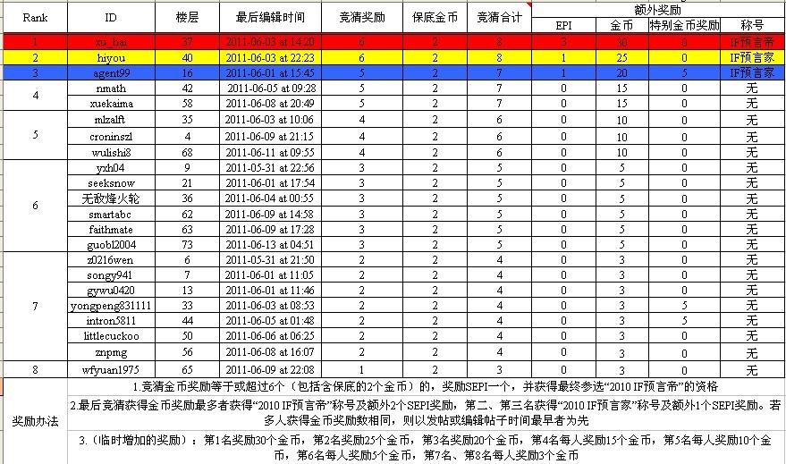 “2010IF预言帝”活动结果发布、颁奖及总结 已有24人参与