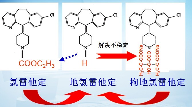 氯雷他定 是地氯雷他定的前药。 前者 脱去N上的保护基成为后者。 前者N被保护起来了,所以不能和乳糖发生反应。是稳定的。