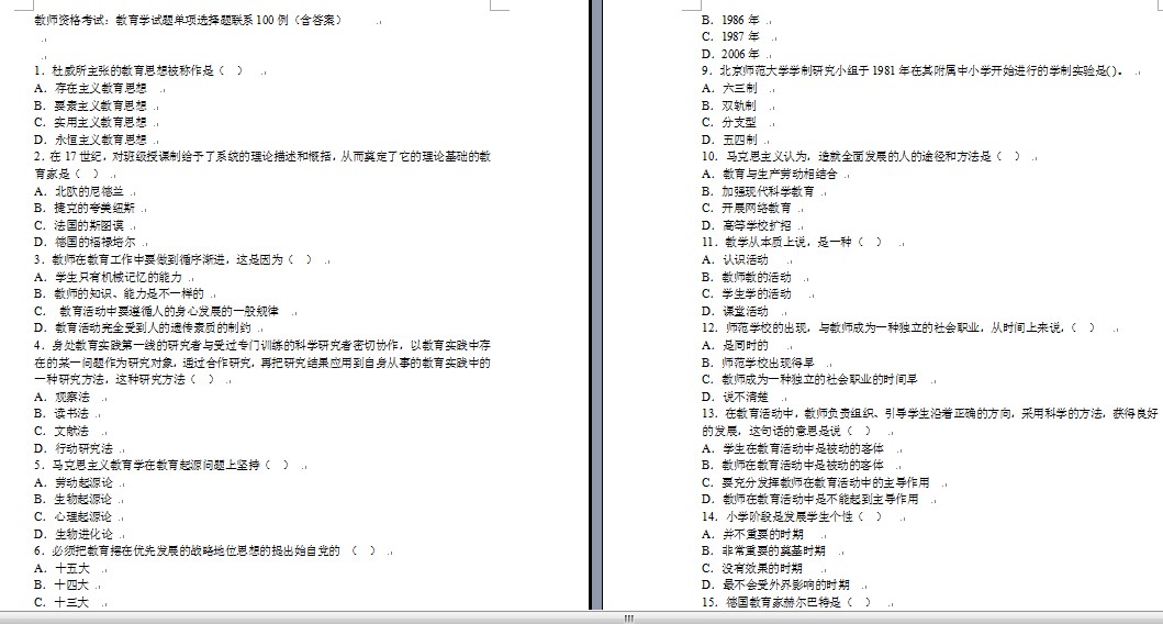 【习题资源】教师资格考试:教育学试题单项选择题联系100例(含答案)