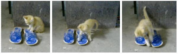 A new member came to my family when my stay at home this summer holiday. It's a lovely yellow cat which is about two months old. I'm not that into pet, but the time this kitten came to my house, I can't help loving it.It's so tiny and cute. You would just like to give one more glance at it and care for it. It soon made itself at home, in no more than one day, and it even began to play with me. Every time I walked out of the room, it would run over and rub against my trousers leg. Then I would tear some dried fish from a large one to feed it.It's cat's nature to eat fish. My cat is no exception. I have to metion that it's so particular about food. Dried fish is its only meal. No rice, no delicious dish, and even no fresh fish. Funny enough, it stepped away from the live fish Dad caught for it, and it seemed to be frightened of the fish. So timid it was |