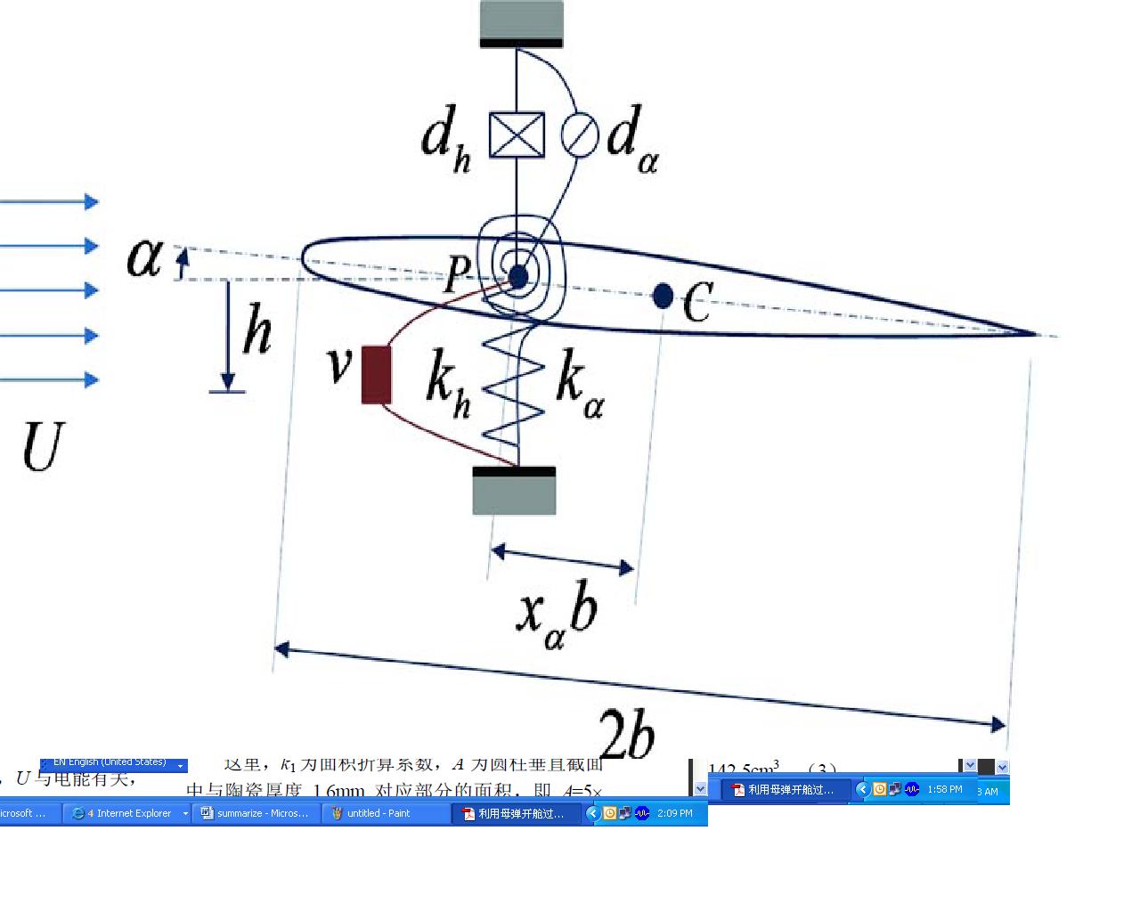 After introducing piezoelectric coupling to the plunge degree of freedom (DOF) in addition to two structural damping coefficients and considering a resistive load in the electrical domain, ... 在電域中,除了两个结构阻尼系数和一个阻力以外,在引进了压电耦合这个颠簸自由度以后,。。。 |