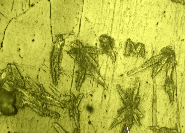 小虾我在石墨坩埚中,780度条件下用纯镁熔体还原氧化锶,保温4h后得到如下铸态组织,请问哪位大虾知道那个树枝状的组织(又有点类似汉字)是什么呢?学校放假没法做检测,只好来投奔大虾们了 !!