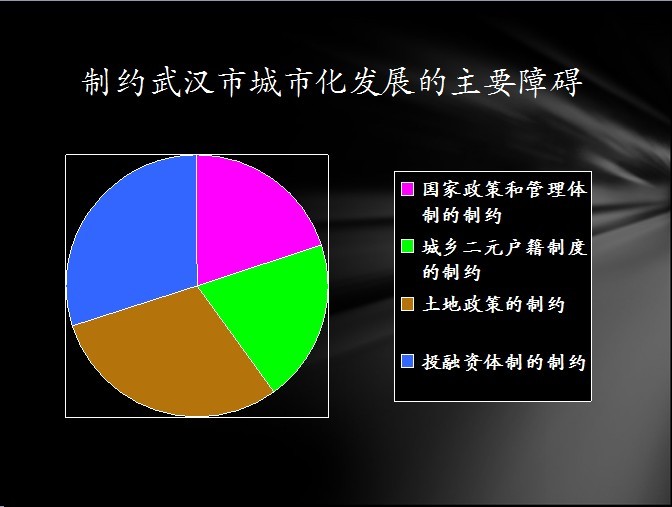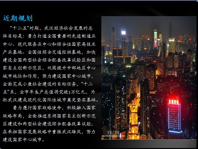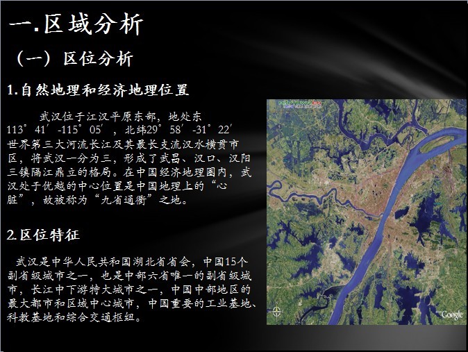 本帖为本人原创PPT课件资源,用56张幻灯片,扼要介绍了武汉的近代历史发展概况,改革开放后武汉的地位由盛转衰的局面,然后通过详细分析目前武汉的区位,包括自然区位和社会经济区位,着重分析了武汉城市化发展中出现的问题及原因,结合当前国家中部崛起和武汉城市圈建设的政策,对武汉市的城市功能进行了定位,提出一系列的战略和措施,促进武汉成为中部崛起的战略支点。幻灯片内容充实、信息丰富、图文并茂、幻灯片技巧耳目一新,感兴趣的虫友可以围观一下,如果下载不成,请访问我的百度文库 [ Last edited by zhangwei19 on 2011-7-16 at 10:50 ] |
