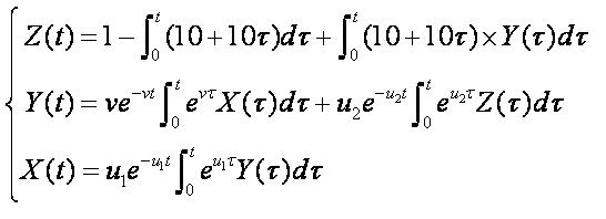 X,Y,Z为待求表达式(将来包含自变量t的X,Y,Z表达式求解出来以后,会把自变量t的值带进去,以便观察X,Y,Z的取值变化)。U1,U2,V都是一个定值。 尝试在matlab里面求解积分方程,可惜matlab也不是很精通阿,总是解不出来。哪位达人能帮忙把这个积分方程组用matlab求解出来最好(没有解析表达式的话,数值解也可以。例如可以把t(0 |